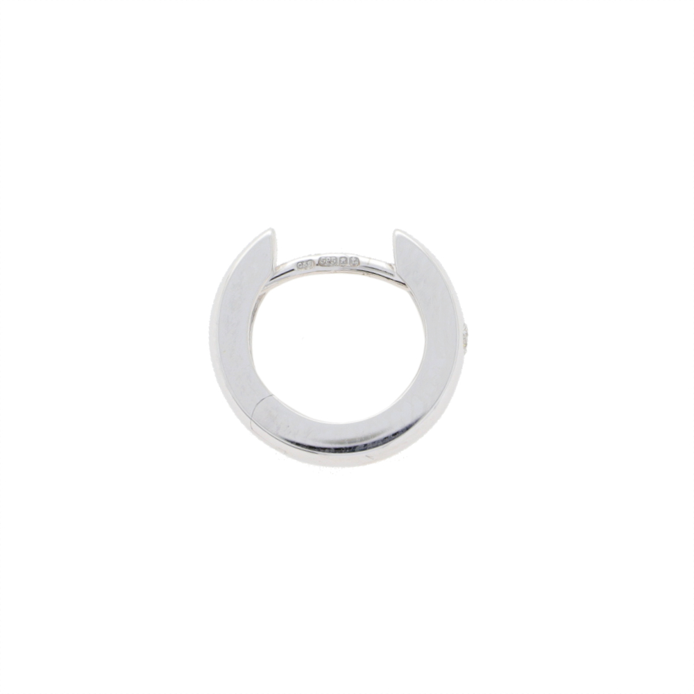 14ct white gold and diamond set hoop earrings. A pair of highly polished white gold hoop earrings, set with a single brilliant cut diamond in a smooth rub over setting. Made to a superior quality with smooth flush hinges.