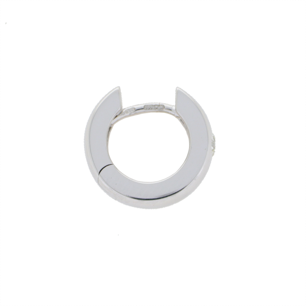 14ct white gold and diamond set hoop earrings. A pair of highly polished white gold hoop earrings, set with a single brilliant cut diamond in a smooth rub over setting. Made to a superior quality with smooth flush hinges.