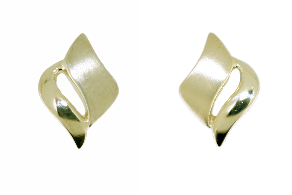 These 9ct yellow gold square earrings are to be for on the diagonal. Split in to 2 sections, the upper half being with a brushed matt finish and the lower half being a polished finish.