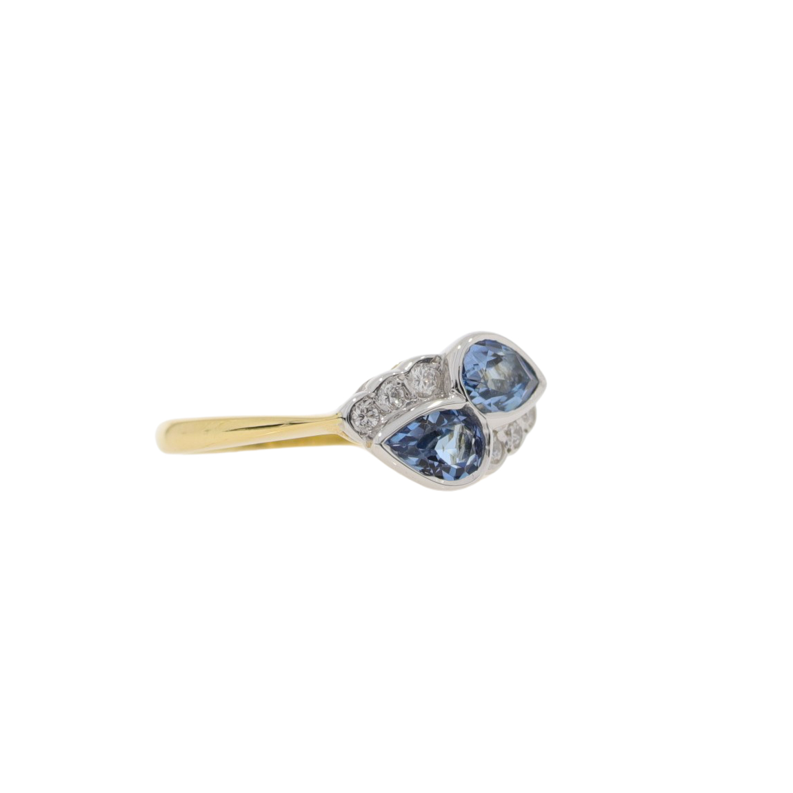 - Aquamarine and diamond crossover pear shaped dress ring, 18ct gold mount
