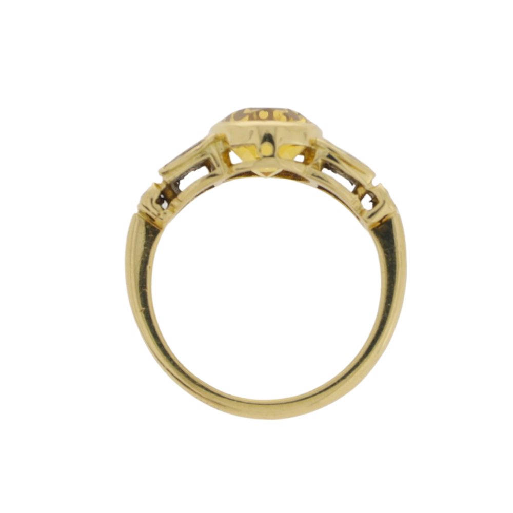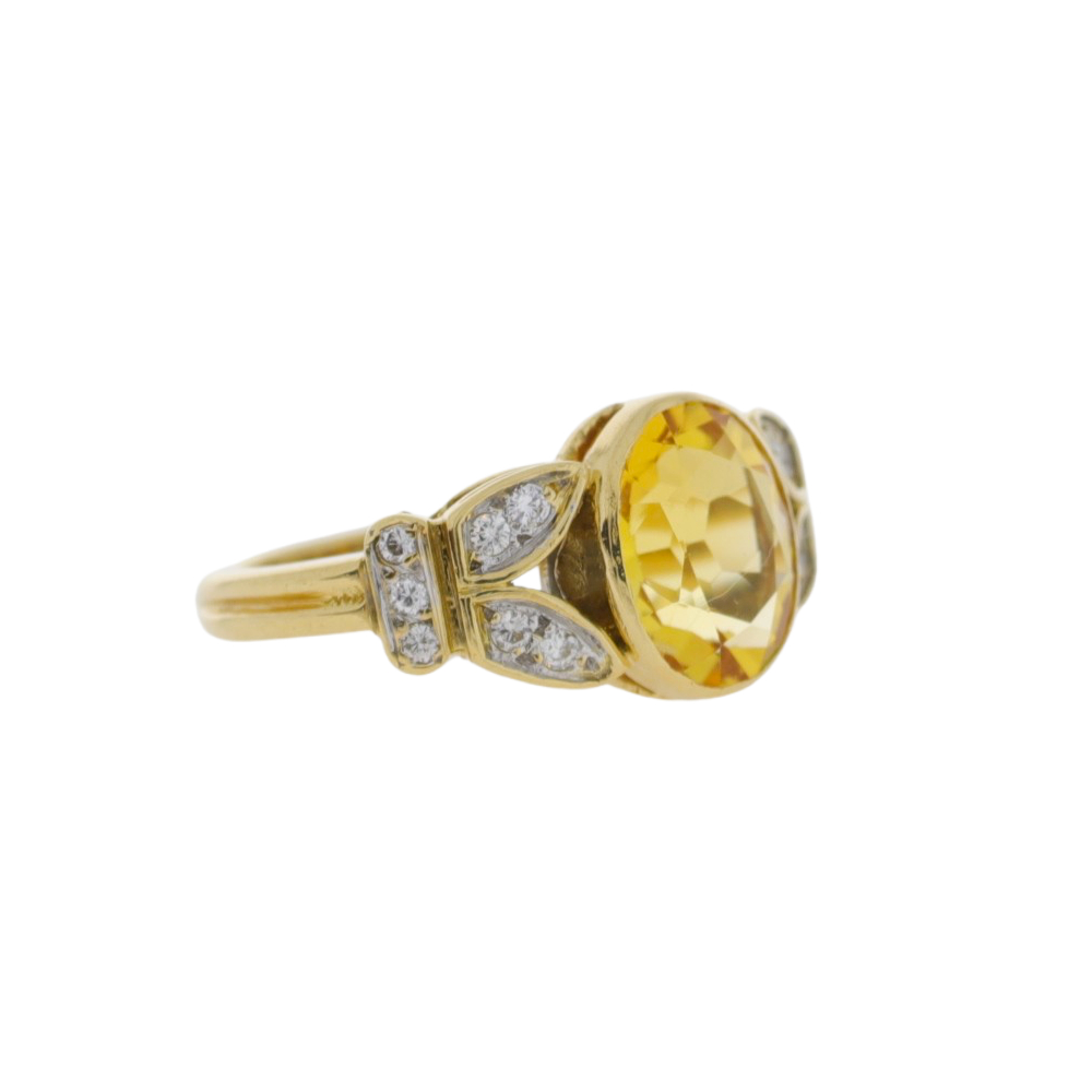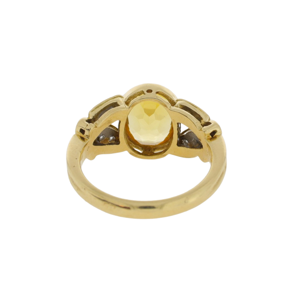 - Citrine single stone ring, with diamond set fancy shoulders, 18ct gold mount