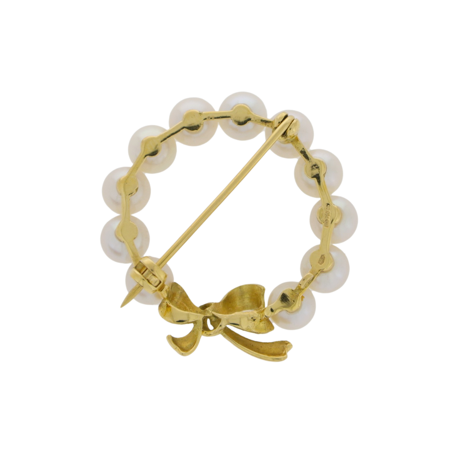 Cultured Pearl and 18ct gold Mikimoto Pearls circle bow brooch