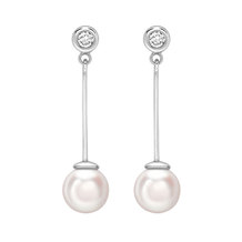 Akoya cultured pearl and diamond two stone long bar earrings, 18ct white gold mounts.