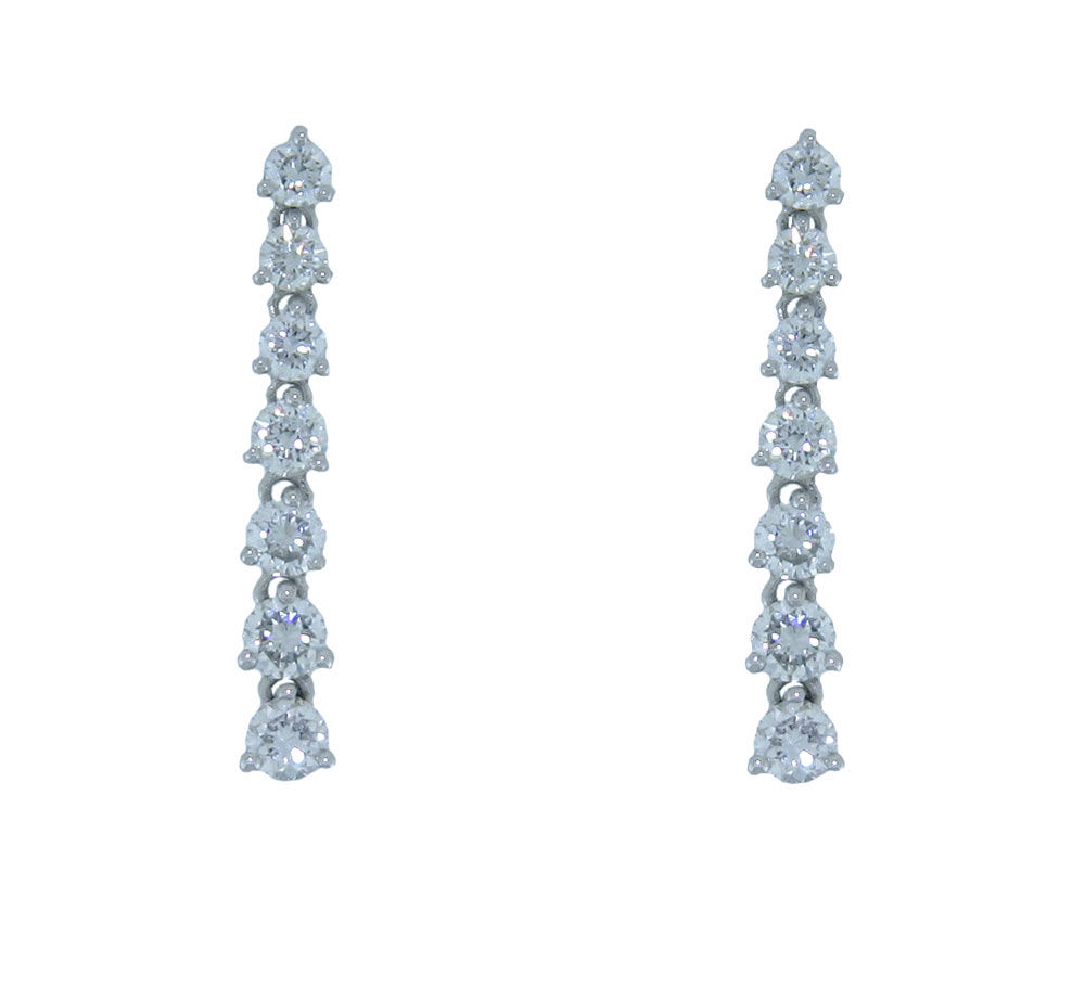 These beautiful earrings are made with 7 graduating brilliant cut diamonds, each in their own separate three claw settings, which are free to move allowing for a very free moving pair of drop earrings. They are secured with traditional post and butterfly fittings.