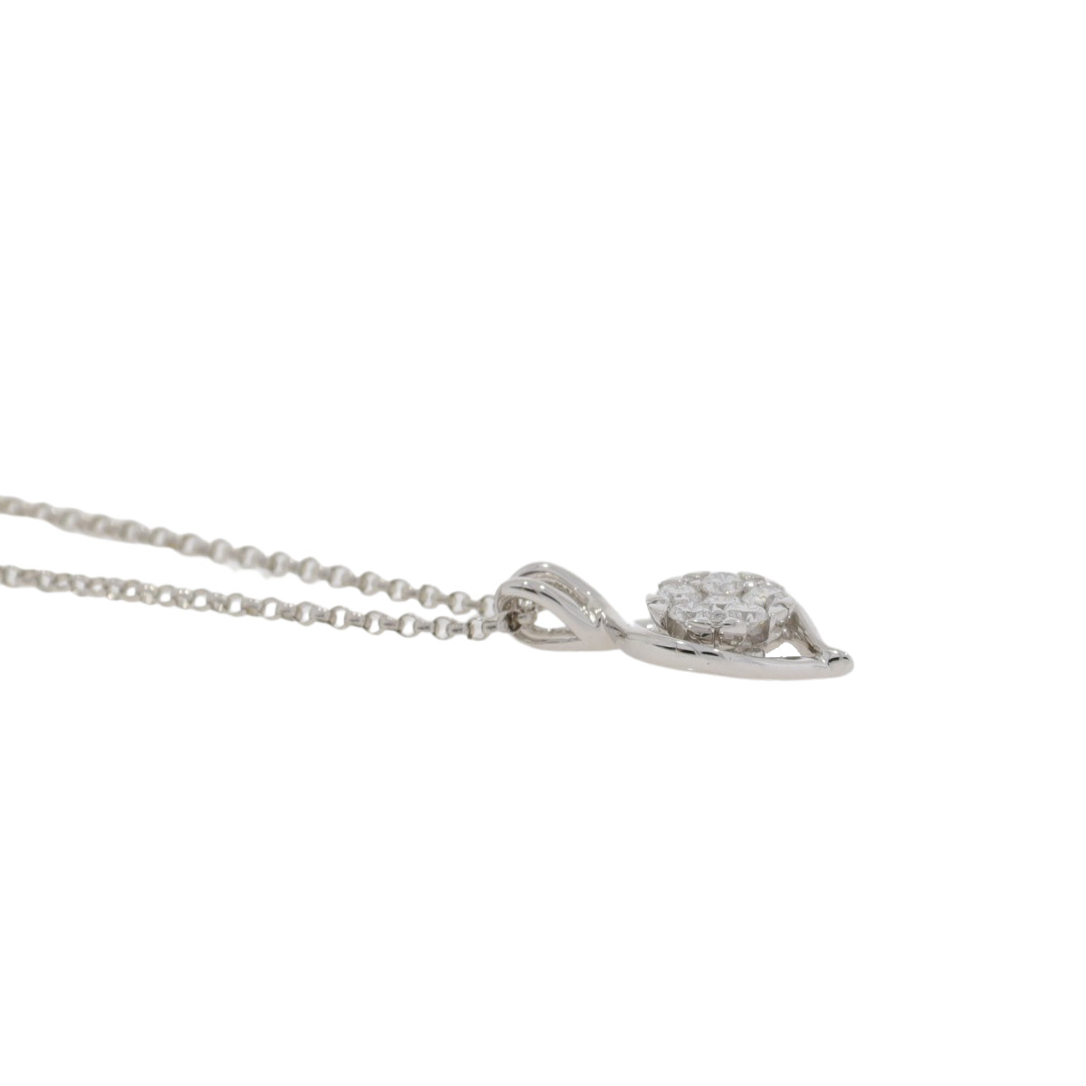 Diamond cluster pendant, 18ct white gold fancy mount and necklet