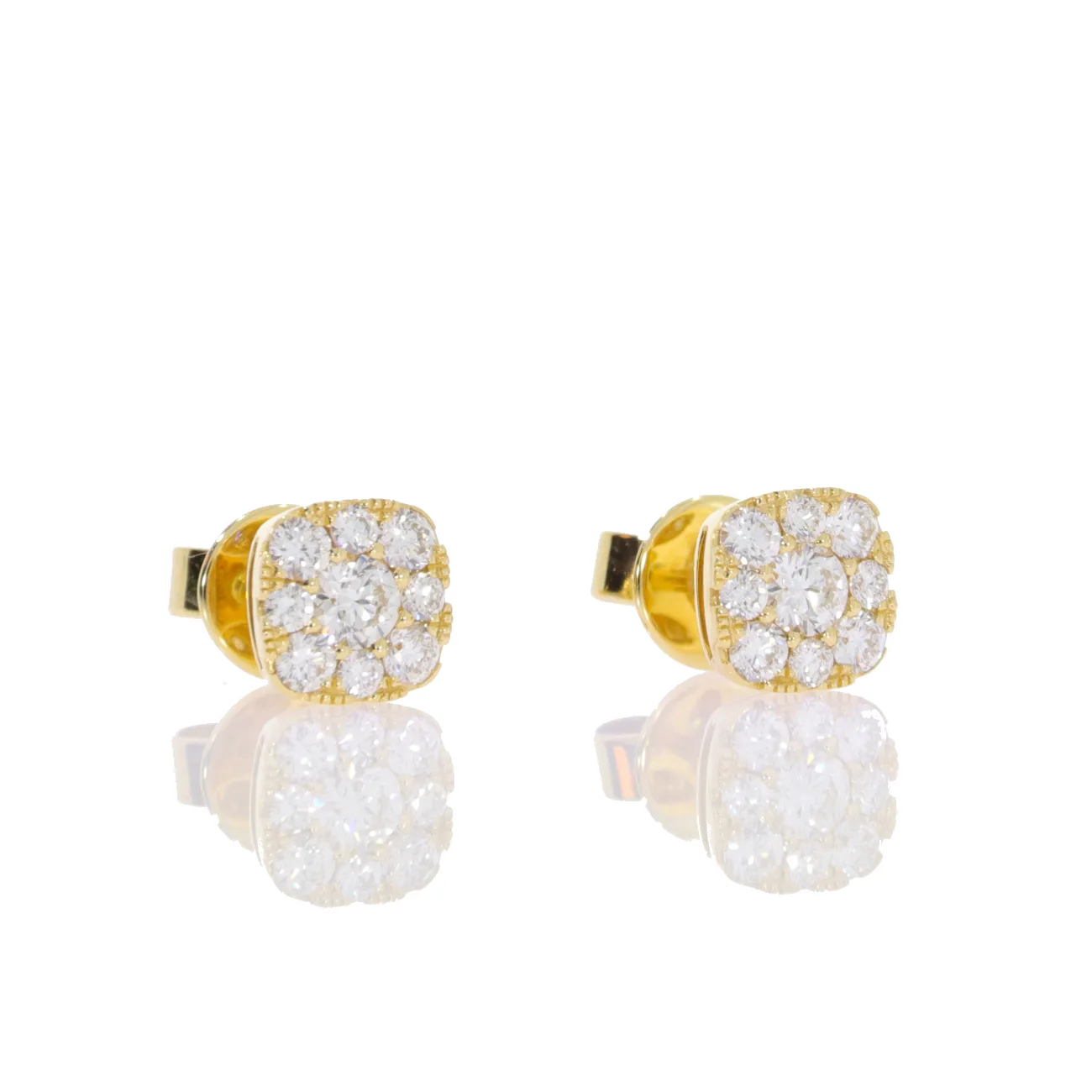 Diamond Cushion Cluster Earrings 0.85ct 18ct Yellow Gold Mounts
