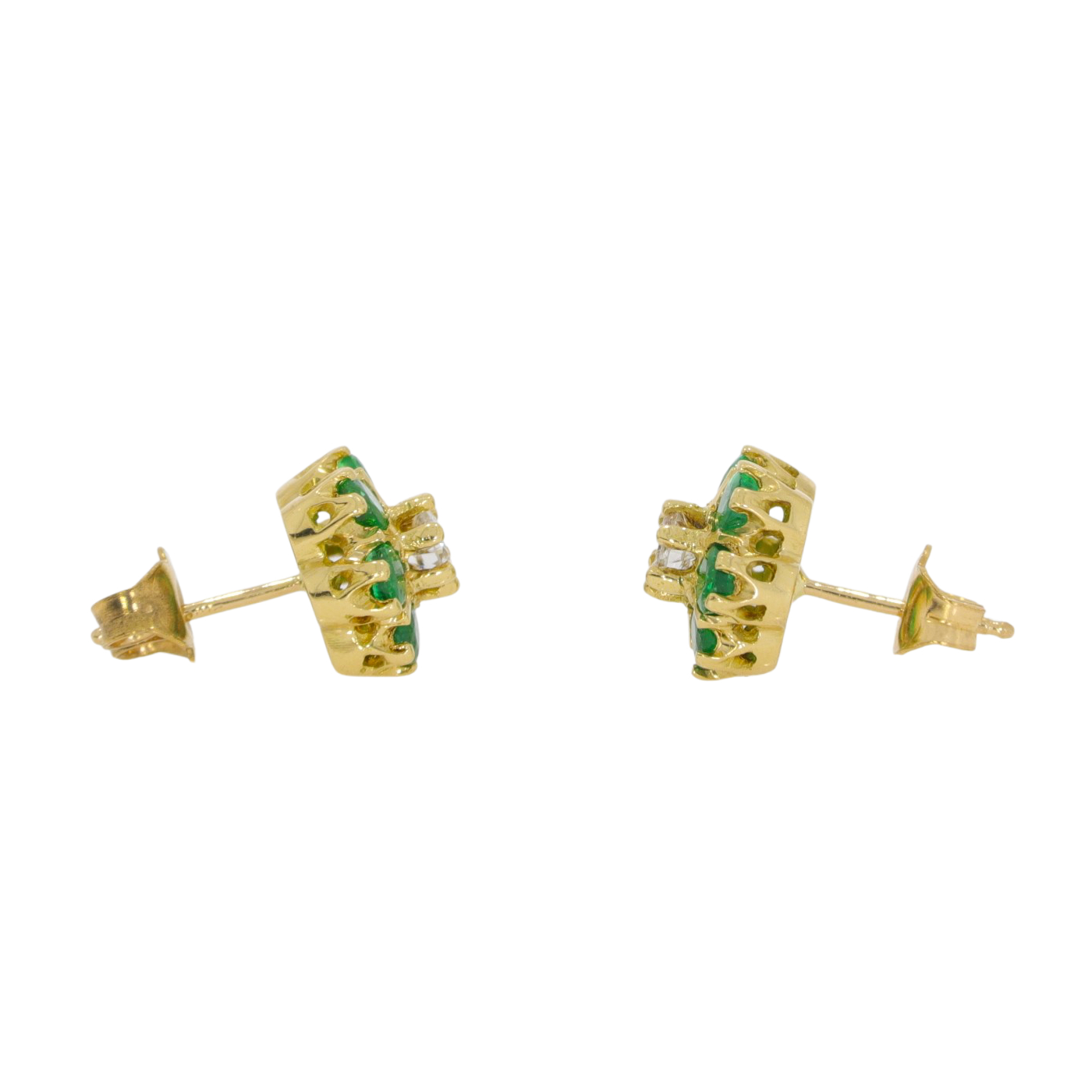 Name | Emerald and diamond seven stone cluster earrings, 18ct yellow gold mounts remove | Ruby and Diamond inverted cluster earrings, 18ct white gold mounts remove | Emerald and Diamond circular cluster earrings, 18ct white gold mounts remove | Emerald and Diamond traditional cluster earrings, 18ct gold mounts remove | Ruby and Diamond Cluster earrings, 18ct gold mounts remove | Ruby and Diamond traditional claw set cluster earrings, 18ct gold mounts remove |