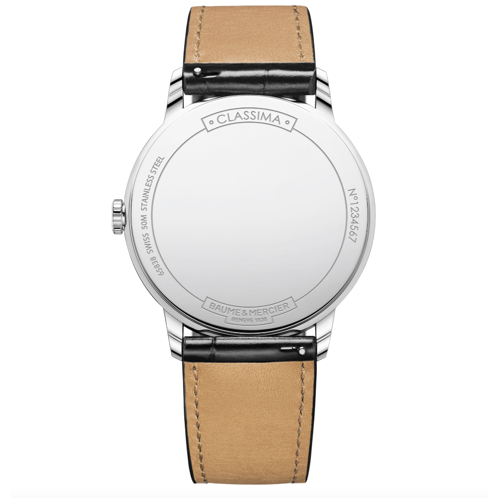 Gents stainless steel Baume & Mercier Classima quartz, date strap watch. A slim and stylish watch.
