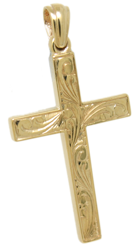 9ct yellow Gold cross Floral hand engraving
