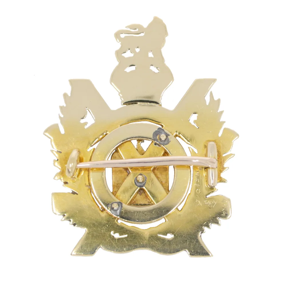 King’s Own Scottish Borderers Regimental sweetheart brooch, 18ct yellow gold and enamel mount