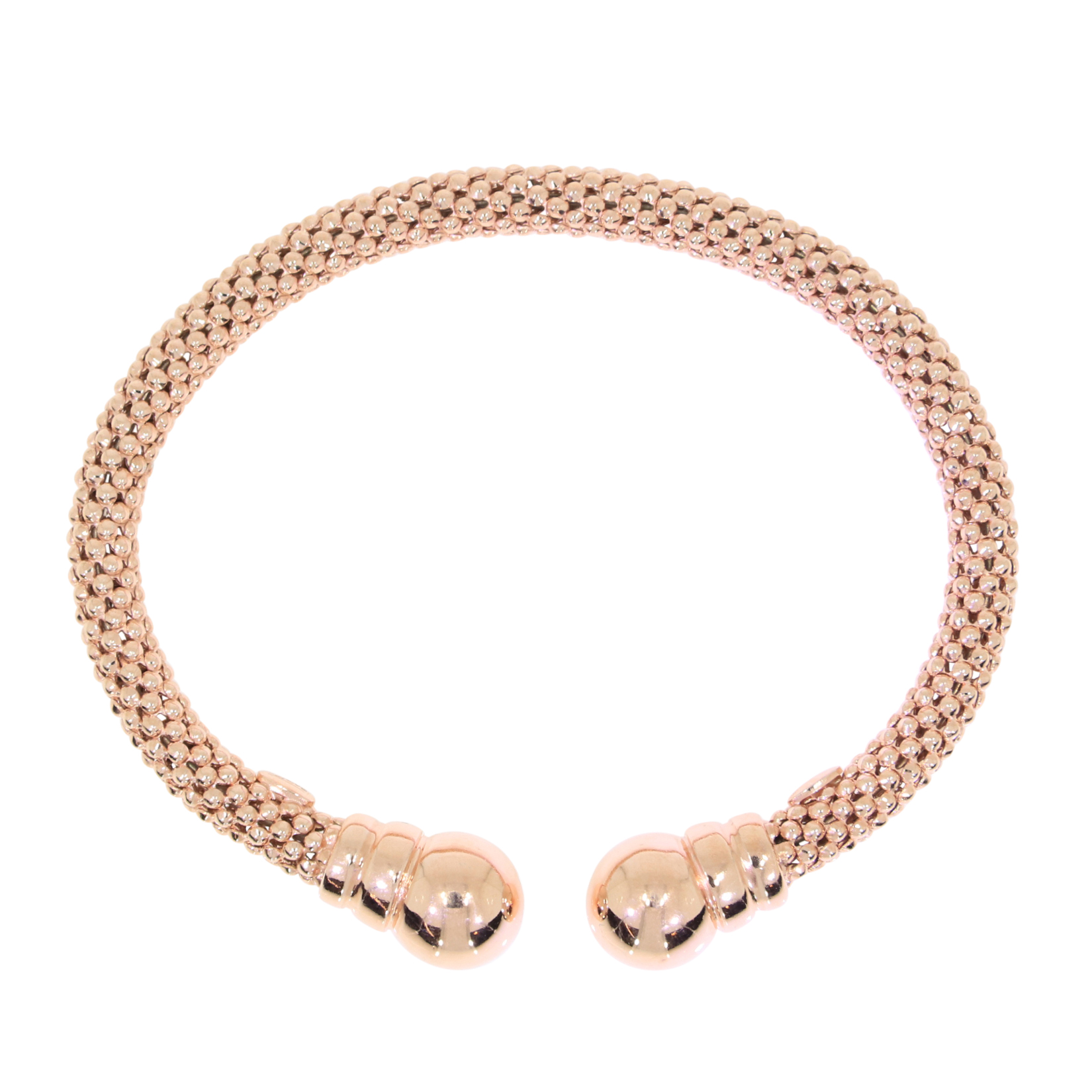 Content | A rose gold plated over sterling silver torque bangle with ball ends This fun and wearable piece of jewellery has a flexible steel core which allows it to be opened to enable it to be be put on the wrist. Measures 70mm across x 59mm Ball ends measure 10mm diameter Each piece is hallmarked in the UK Supplied in a Connards presentation box | This 9ct gold bracelet is entirely handmade in England. This design is made up of all equal sized yellow gold links, these are then connected with smaller rose gold and white gold links alternating in pairs, these are free to revolve. This design of bracelet is a very comfortable piece to wear everyday and due to the quality is made to be worn everyday. It is available in different gauges of gold and different colour options and can also be made to any length. This is one of the heaviest gauges we keep in stock, lighter versions of the same style are also available. Measures 7.5 inches (19cms) | This hallmarked 9ct gold bracelet is entirely handmade in England. This design is made up of three shorter yellow gold links alternating with one larger oval link, these are then connected with smaller yellow gold circular links and these are free to revolve. This design of bracelet is a very comfortable piece to wear everyday and due to the quality is made to be worn everyday. It is available in different gauges of gold and different colour options and can also be made to any length. Measures 7.5 inches (19cms) | This 9ct gold bracelet is entirely handmade in England. This design is made up of three shorter yellow gold links alternating with one larger oval link, these are then connected with smaller rose gold and white gold links alternating in pairs, these are free to revolve. This design of bracelet is a very comfortable piece to wear everyday and due to the quality is made to be worn everyday. It is available in different gauges of gold and different colour options and can also be made to any length. Measures 7.5 inches (19cms) | This is a beautiful hallmarked 9ct yellow gold bracelet. The bracelet is made up of individual links in an oval shape, the centre link being the widest and with a polished finish and the outer links are with 3 grooves on each link in a staggered effect. The bracelet has a large circular feature fastener. The ends of the bracelet linkage have a circular tube which is finished at each end with a cabochon blue sapphire, this is a very traditional style of making a quality piece of jewellery complete. These are beautifully handmade pieces by 2 English Brothers Length: 190mm Width: 8.5mm (15mm wide at the sapphire end bars) | This 9ct gold bracelet is entirely handmade in England. This design is made up of all equal sized yellow gold links, these are then connected with smaller rose gold and white gold links alternating in pairs, these are free to revolve. This design of bracelet is a very comfortable piece to wear everyday and due to the quality is made to be worn everyday. It is available in different gauges of gold and different colour options and can also be made to any length. This particular model is probably the most popular combining the array of colours and just slightly larger rollers than the smaller version Measures 7.5 inches (19cms) |