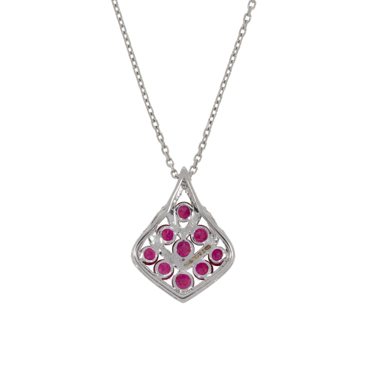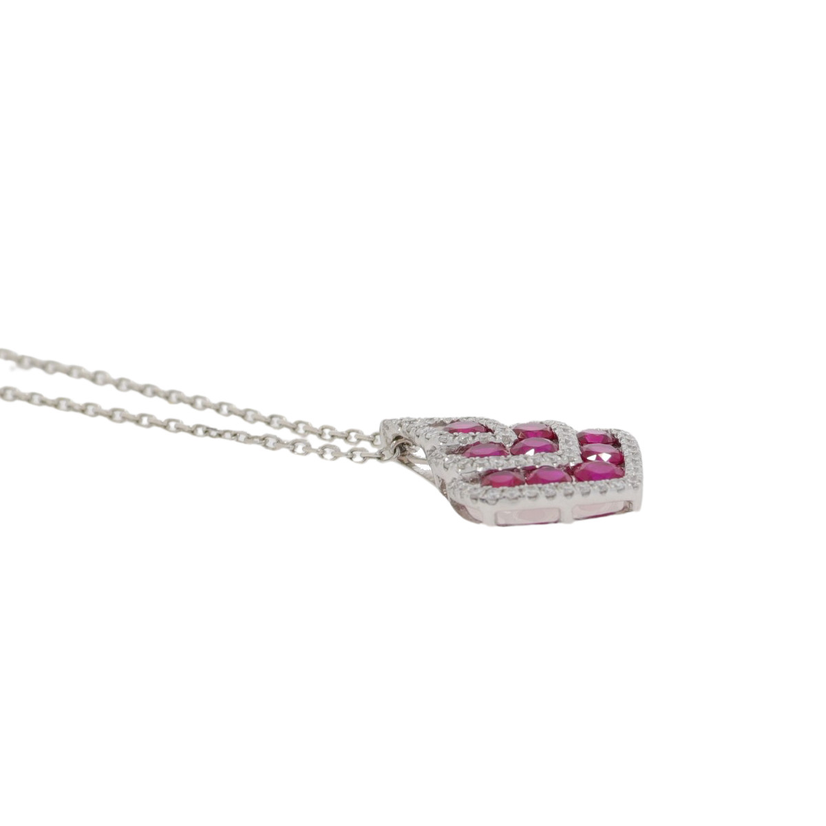 Ruby and Diamond pendant, 18ct white gold mount and necklet