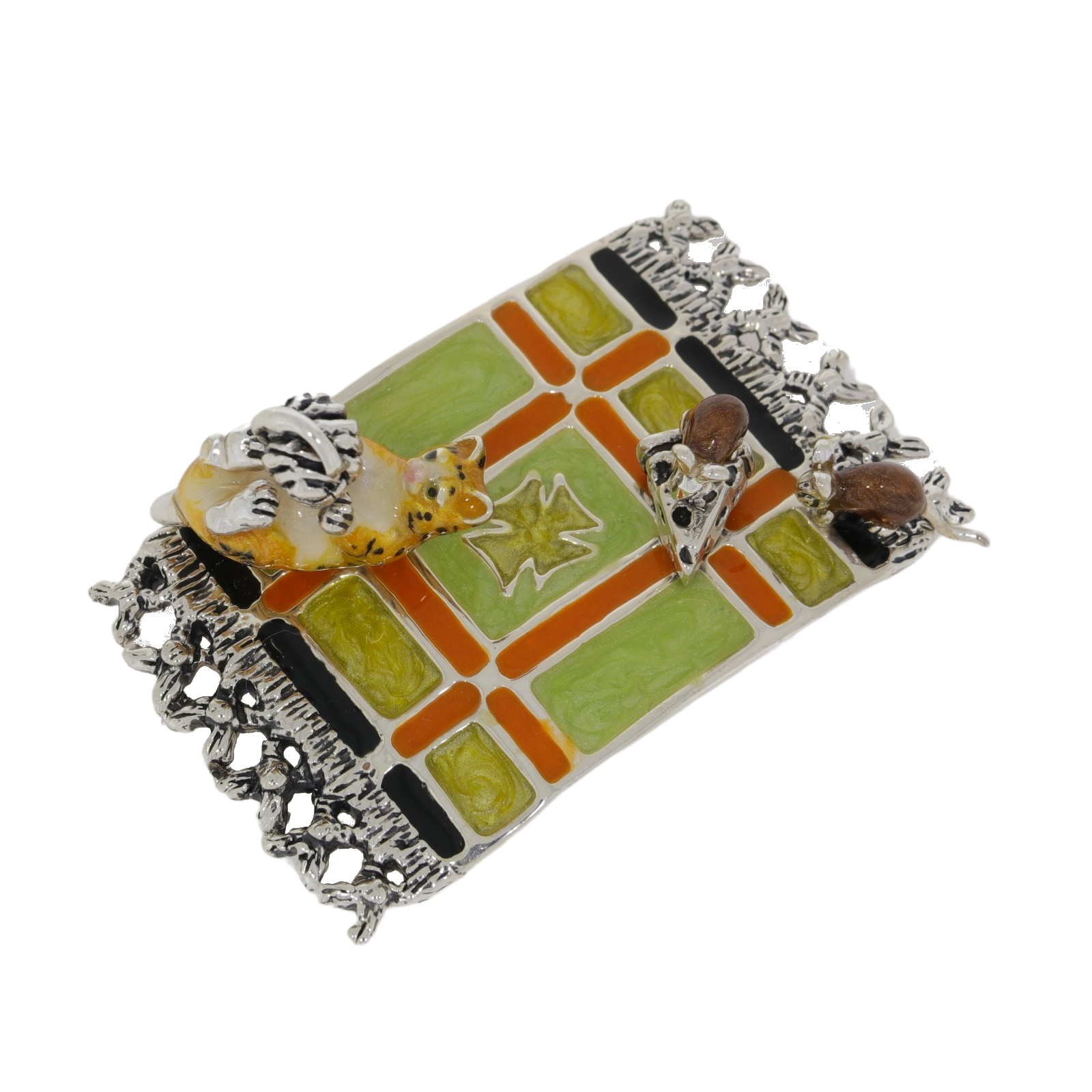 - Saturno Sterling Silver and Enamel Cat, mice and Carpet Ornament