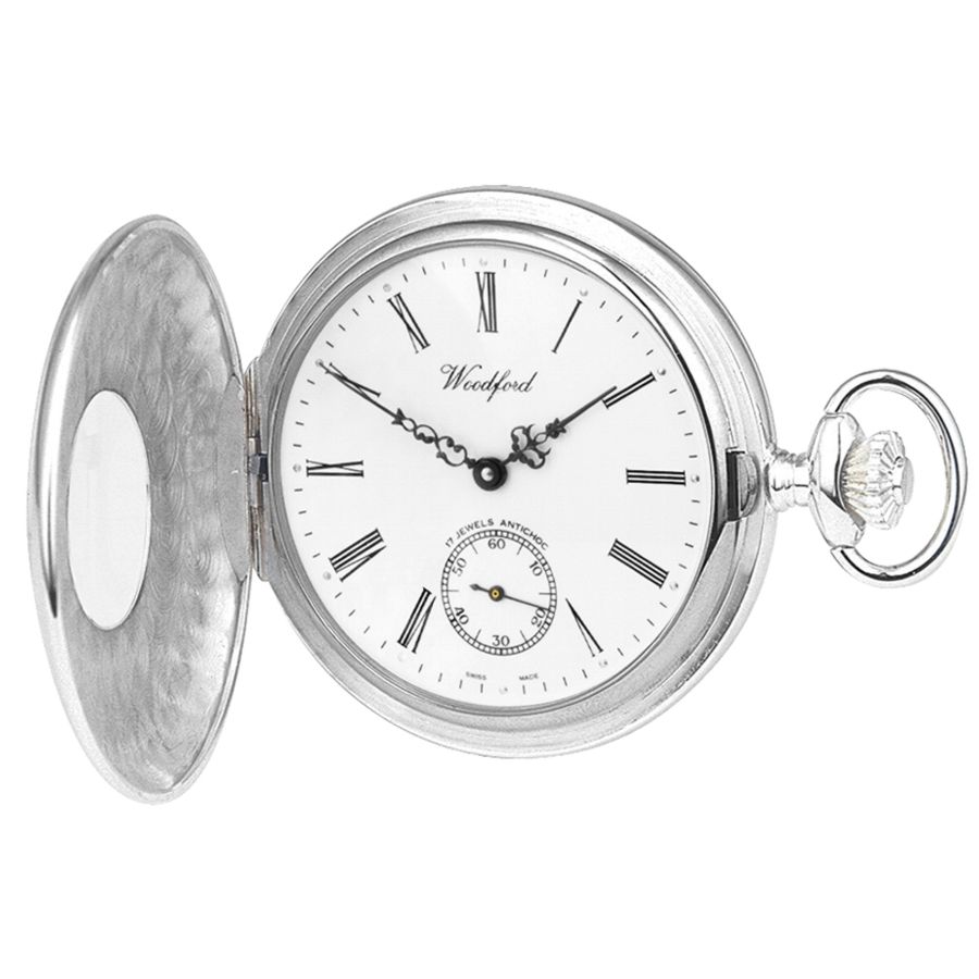 - Sterling Silver Half Hunter Swiss Jewel Lever Woodford Pocket Watch
